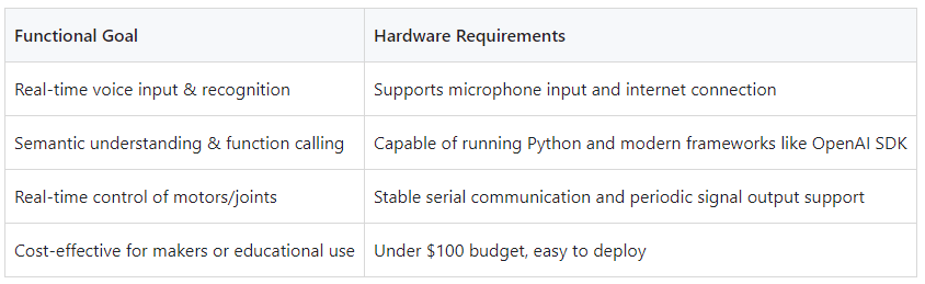 To create a robot that can genuinely “understand human speech”, one must rely not only on a powerful AI model but also on the efficient collaboration between hardware and software. This section will delve into the architecture of this project from two major aspects: